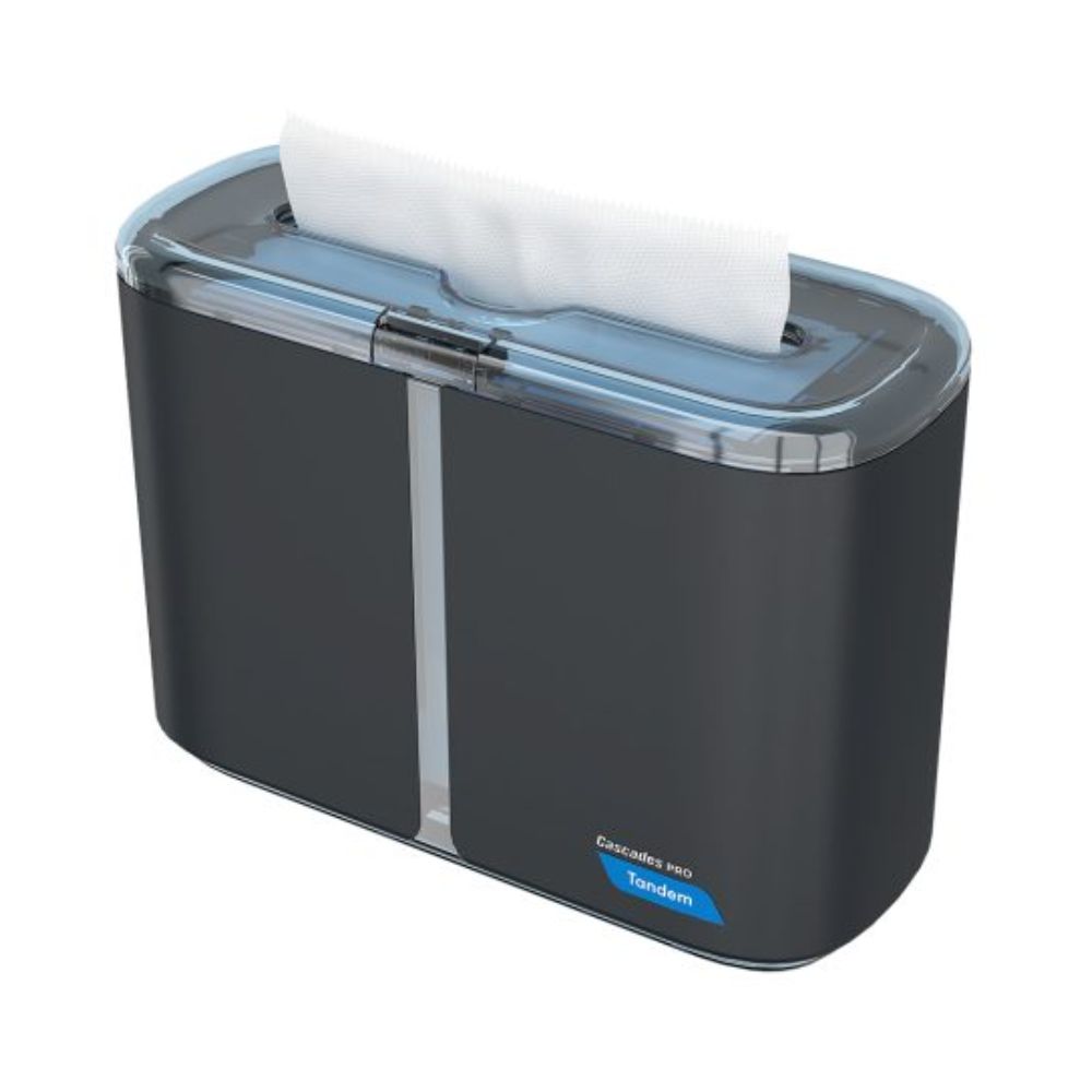 The Cascades PRO Tandem® Multifold Hand Towel Countertop Dispenser stands out as the only countertop dispenser that can accommodate two paper formats, providing additional flexibility to meet different needs. It offers a jam-free experience, guaranteeing better hygiene with its stylish, modern, streamlined design, while optimizing operating costs. It’s inventive design allows for a quick view of paper levels, simplifying refill management. Versatile, it can be used vertically or horizontally in smaller spaces and conforms to ADA guidelines when correctly installed, ensuring optimal accessibility. Opt for the Cascades PRO Tandem® C360 countertop dispenser for efficient management of multifold hand towels, ensuring optimal hygiene and exceptional adaptability in various settings.