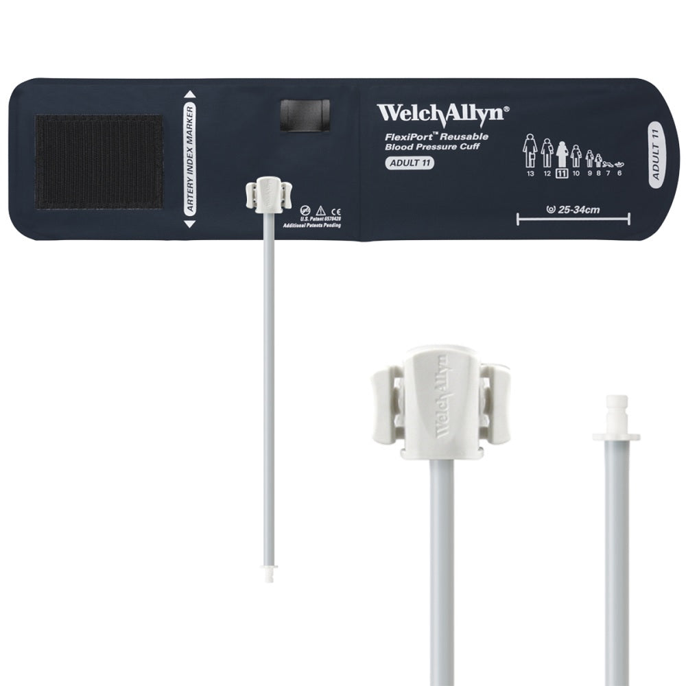 The Welch Allyn FlexiPort Reusable One-Tube Bayonet Adult Cuff (Size 11) offers a secure and accurate blood pressure reading for adult patients. Measuring 25 cm to 34 cm, it is designed for durability and compatibility with various BP monitor brands, (HP/Philips , Siemens , Spacelabs , Criticare , IVAC/Alaris , Datascoope) making it ideal for clinical use.