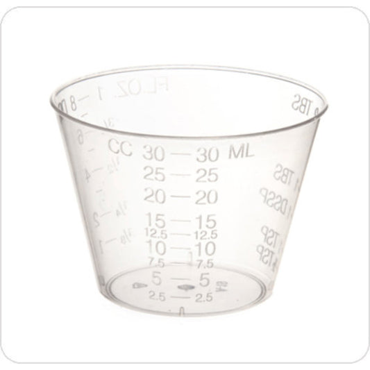 These translucent, disposable medicine cups are made from durable polypropylene and offer precise 1 oz. measurements before the brim. Ideal for dispensing liquids, powders, or pills, they serve as a reliable alternative to teaspoons.
