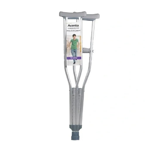 Constructed from durable anodized aluminum, Avantia Aluminum Crutches offer superior comfort and reliability. Latex-free accessories ensure an added level of comfort for the user. The composition includes anodized aluminum and no latex content.
