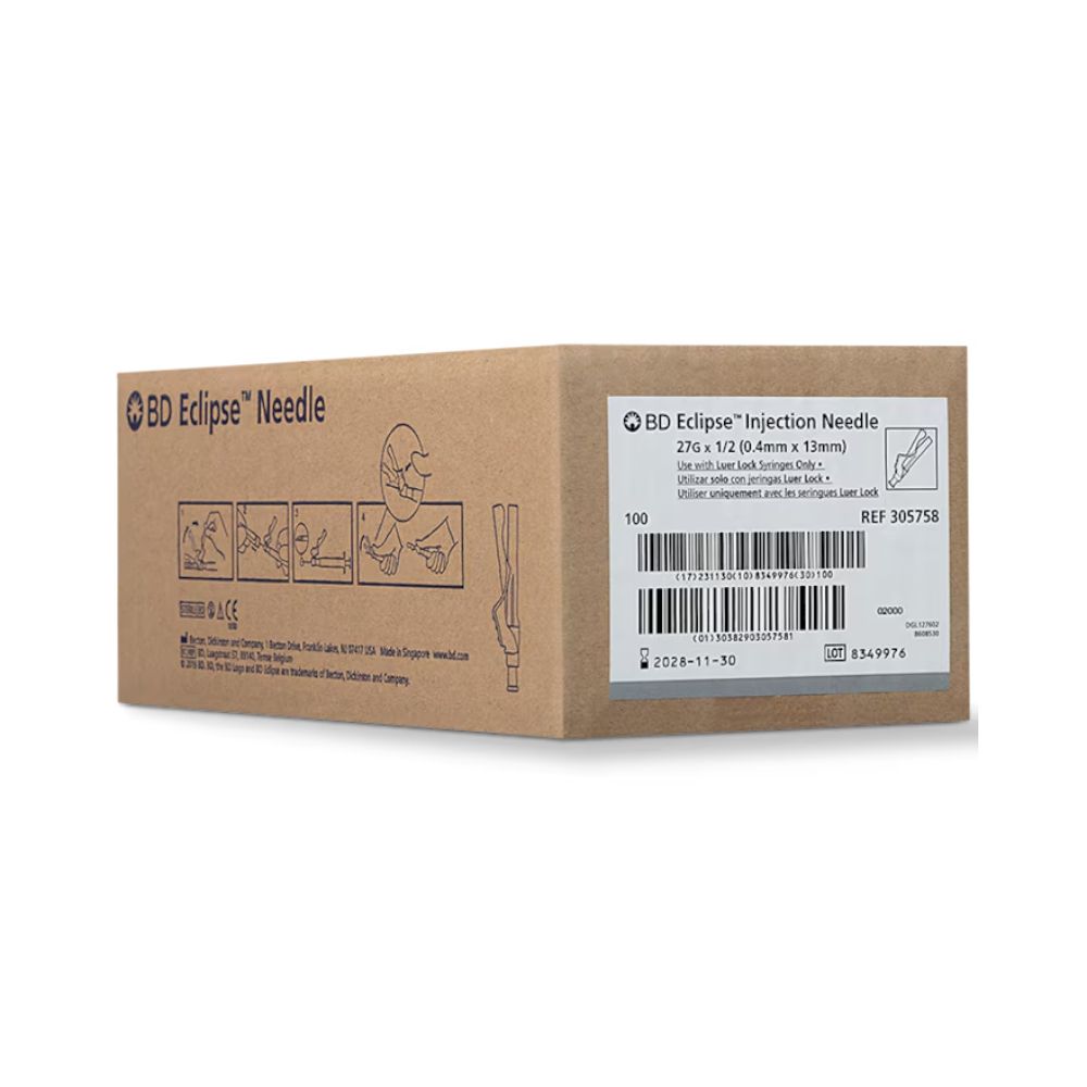 The BD® Eclipse™ Safety Needle offers a ultra-fine 27-gauge, ½-inch needle paired with an innovative pivoting shield that activates instantly upon withdrawal. The precision-aligned bevel and safety cover design enables controlled, shallow-angle injections with reduced insertion resistance, making it ideal for intradermal procedures and sensitive applications. As a single-use, sterile disposable product, it eliminates cross-contamination risks while prioritizing patient comfort. Each box contains 100 individually packaged needles, with 12 boxes per case providing 1,200 units total. This configuration supports high-volume clinical settings requiring reliable safety mechanisms for specialized injection techniques.