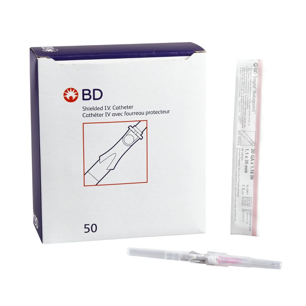 BD Insyte™ Autoguard™ Shielded IV Catheter, 20G x 1 in., Pink - Pack of 50