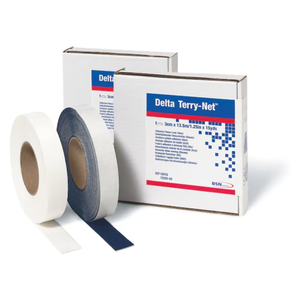 Delta Terry-Net™ Adhesive Fleece Edger features a high quality adhesive for secure placement. Its unique stretch allows the user to pad easily around corners and contours, ensuring smooth cast edges.