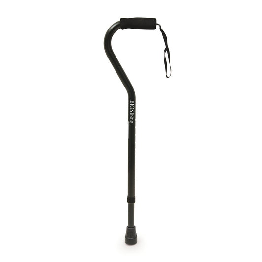 Constructed of lightweight aluminum with a wrist strap and backed by a 1 year warranty, the Offset Cane stands at a height of 31" - 39" / 79 - 99 cm and has increments of 1" / 2.5 cm, supporting a weight capacity of 300 lbs / 136 kg.