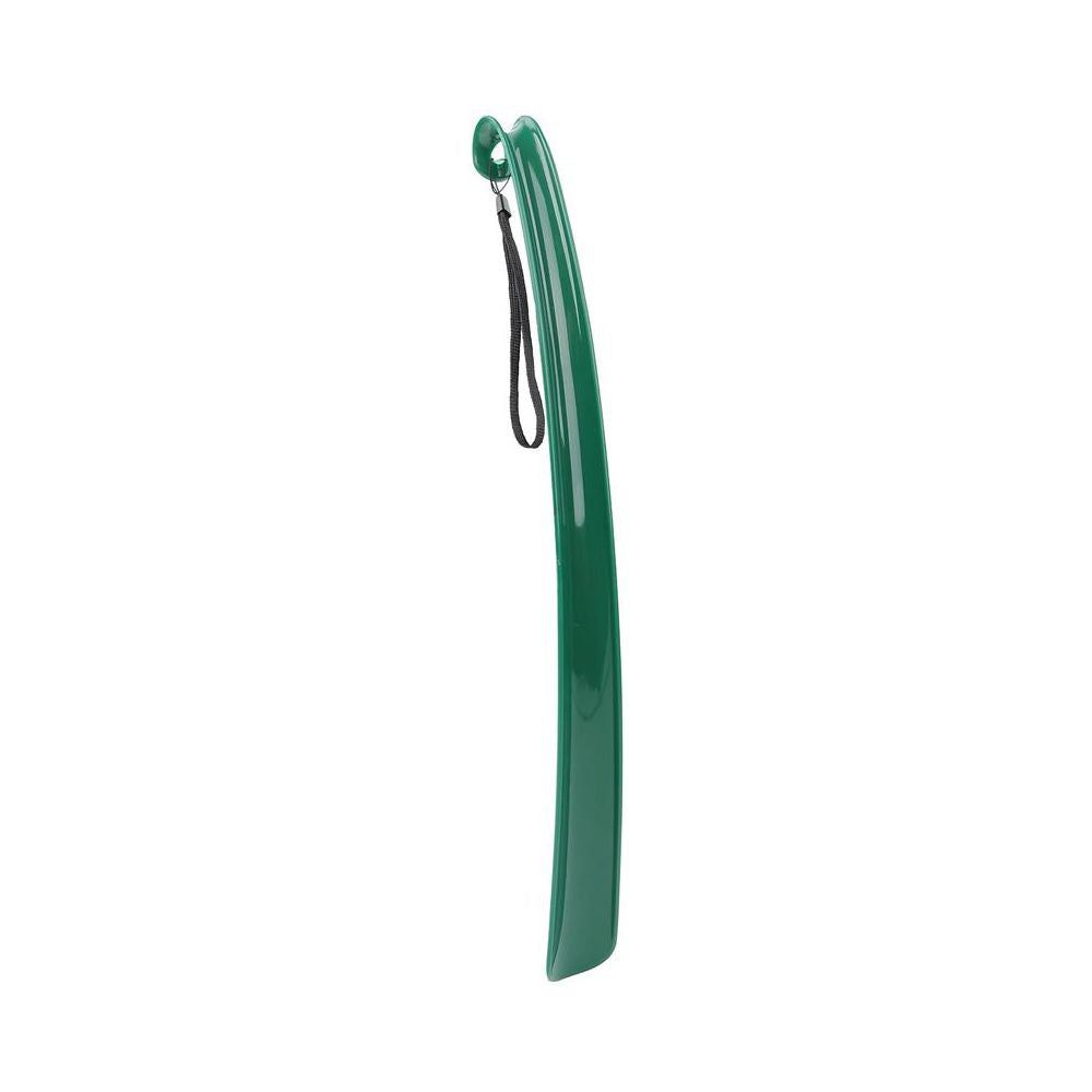This durable plastic shoehorn features an integrated lanyard for easy storage and accessibility. Please note that the color may differ between units.