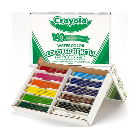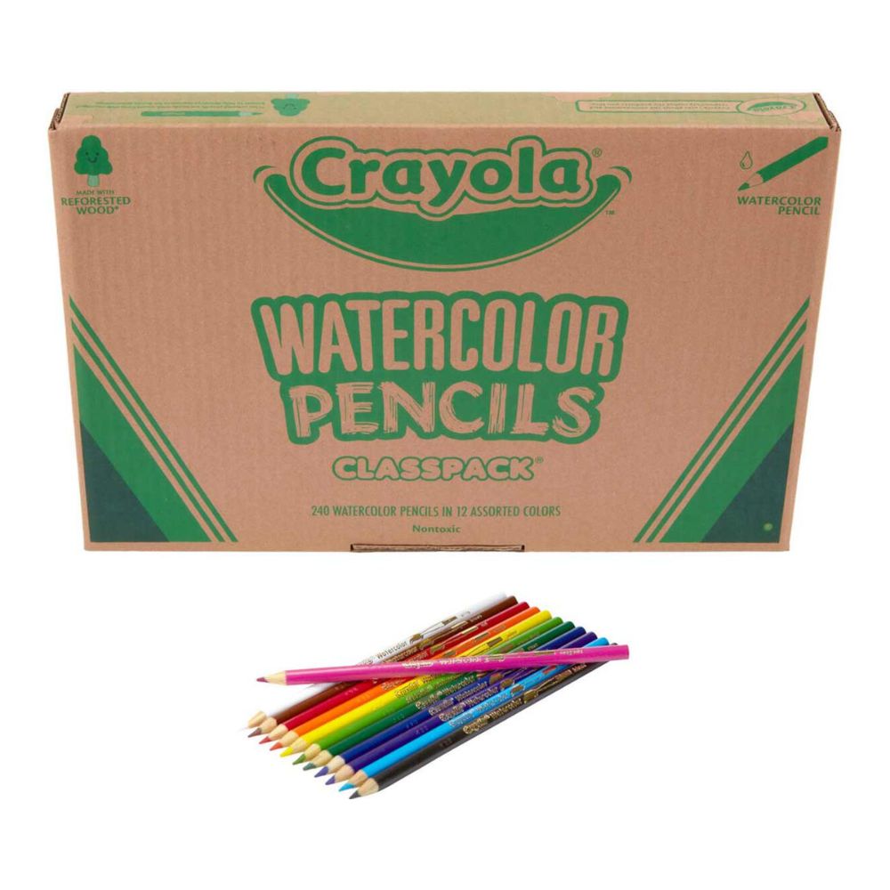 Equip your classroom with Crayola Watercolor Pencils, a versatile 240-count collection offering 12 vibrant hues. These dual-function pencils deliver watercolor washes when dampened or perform as traditional dry pencils for conventional coloring. The comprehensive assortment—including Sky Blue, Red, Magenta, Orange, Violet, Brown, Yellow, Green, Yellow Green, White, and Black—supports diverse artistic projects throughout the academic year. Crafted from sustainably sourced wood and pre-sharpened for immediate use, these pencils meet rigorous safety standards and suit young artists ages 5 and beyond. An economical bulk solution for schools and creative programs.